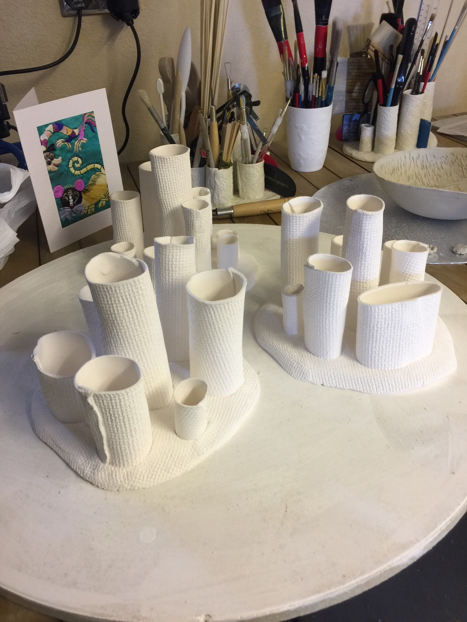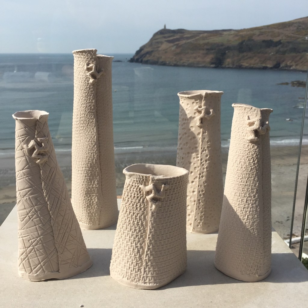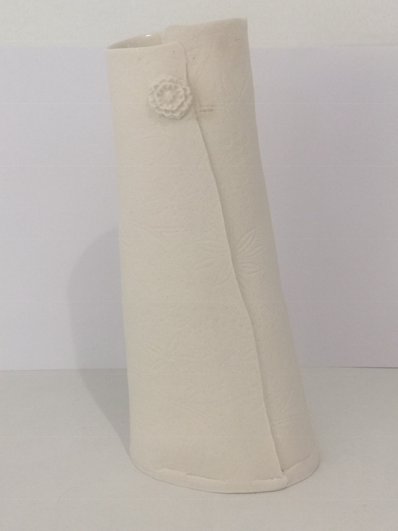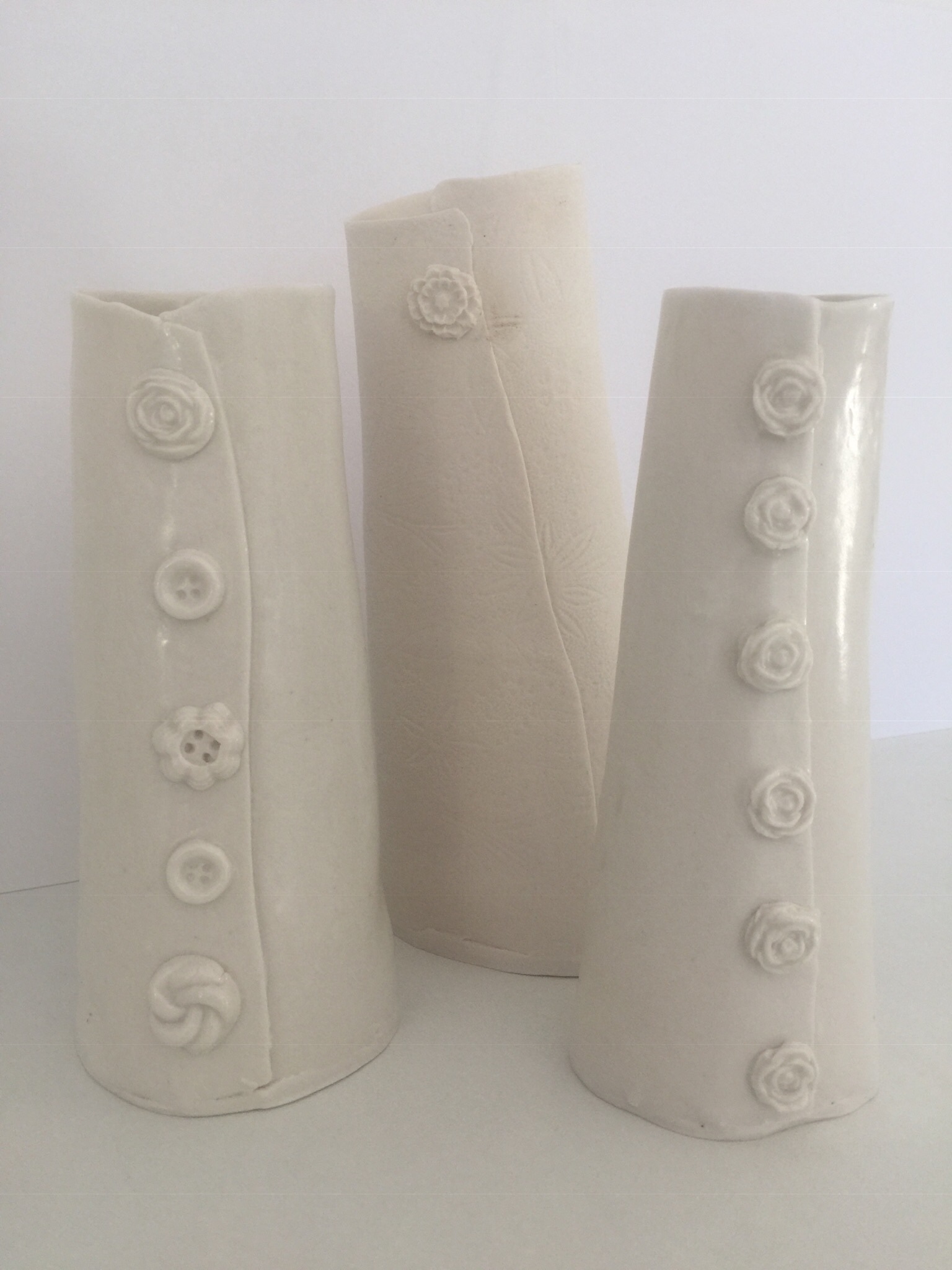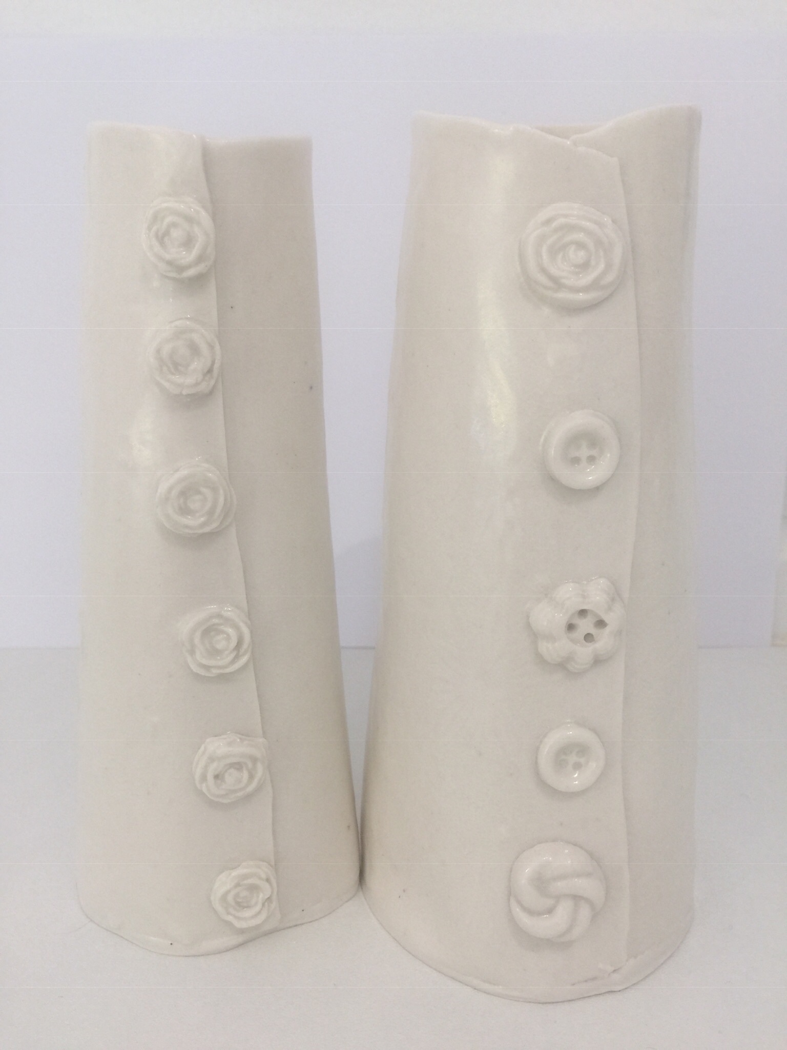 When I’m not making my big story pots I sometimes like to work completely out of character and make very dainty porcelain Or bone China vases of all sizes, sometimes with embellishment but often plain.